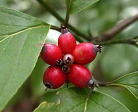 Cornus Florida is a native variety that blooms white or pink in early spring. It attracts insects that birds like to eat. Birds return in the fall to eat the clusters of red berries that ripen over the summer.